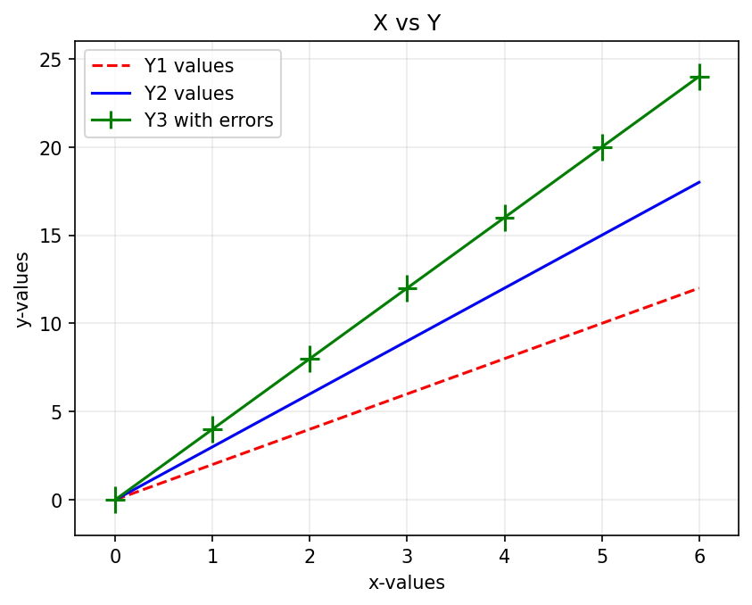 plt.legend(loc='upper left')In this example, I have provided constant errors for all the points. However, you can also provide a list of errors so that each will have a different length.
